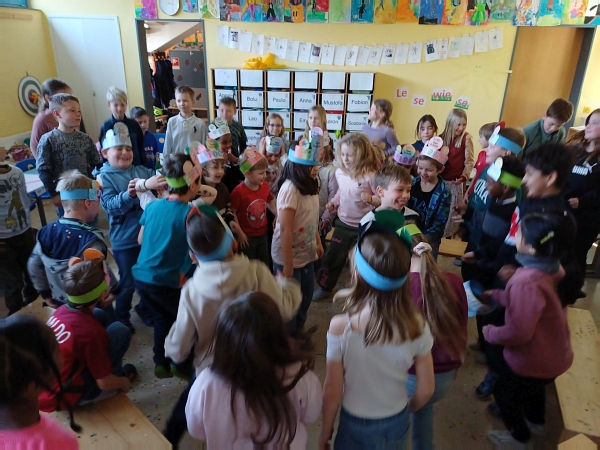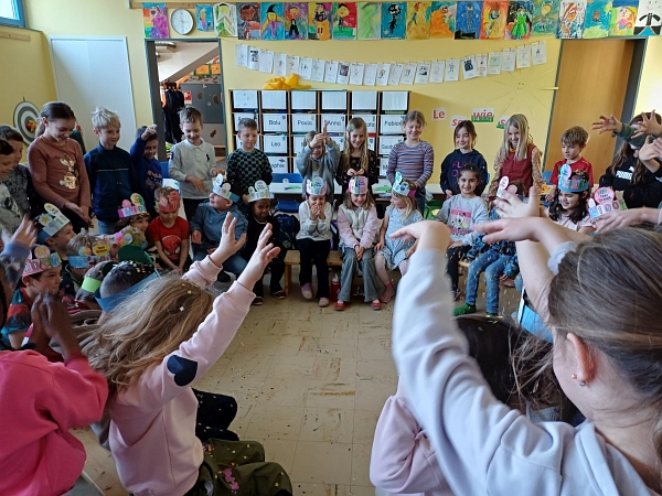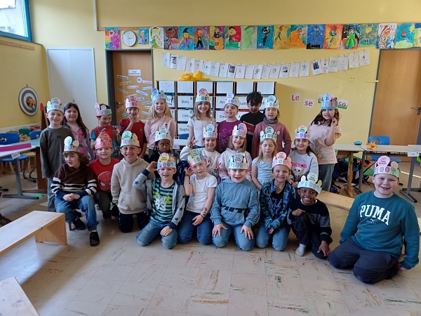 Schon am Morgen herrschte im Klassenzimmer der 1c fröhliche Aufregung. Mit viel Begeisterung bastelten die Kinder ihre farbenfrohen 100‑Tage‑Kronen – kunterbunt, individuell und jede ein echtes Unikat. Stolz trugen sie ihre Kronen und verwandelten die Klassen in ein kleines Königreich der Erstklässler.