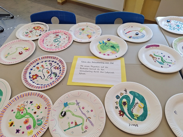 Im Anschluss öffneten die Forscherlabore ihre Türen. Jeder Raum pulsierte vor Energie und Neugier. Drinnen wurde experimentiert, erforscht und begeistert erklärt: Rotkohl, der seine Farbe wechselte, selbst gemachte Lavalampen, geheimnisvolle Fühlkisten, Regenbogenwasser und der heiße Draht faszinierten Groß und Klein. Ballons tanzten durch die Luft, während überall neugierige Fragen und schlaue Antworten die Räume erfüllten.