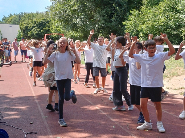 Bei strahlendem Sonnenschein gestalteten unsere Schülerinnen und Schüler den Auftakt unseres diesjährigen Schulfestes mit zwei mitreißenden Tänzen und ausdrucksstarken Liedern, die für strahlende Gesichter und langen Applaus sorgten.